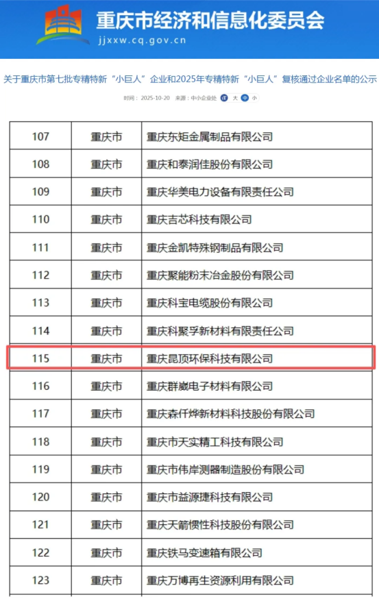 喜訊!近日,國(guó)家工業(yè)和信息化部專(zhuān)精特新“小巨人”企業(yè)復(fù)核結(jié)果正式揭曉——昆頂環(huán)保再獲國(guó)家工信部專(zhuān)精特新“小巨人”復(fù)核認(rèn)證,蟬聯(lián)中小企業(yè)最高榮譽(yù),穩(wěn)居環(huán)保科技領(lǐng)域“領(lǐng)頭雁”。