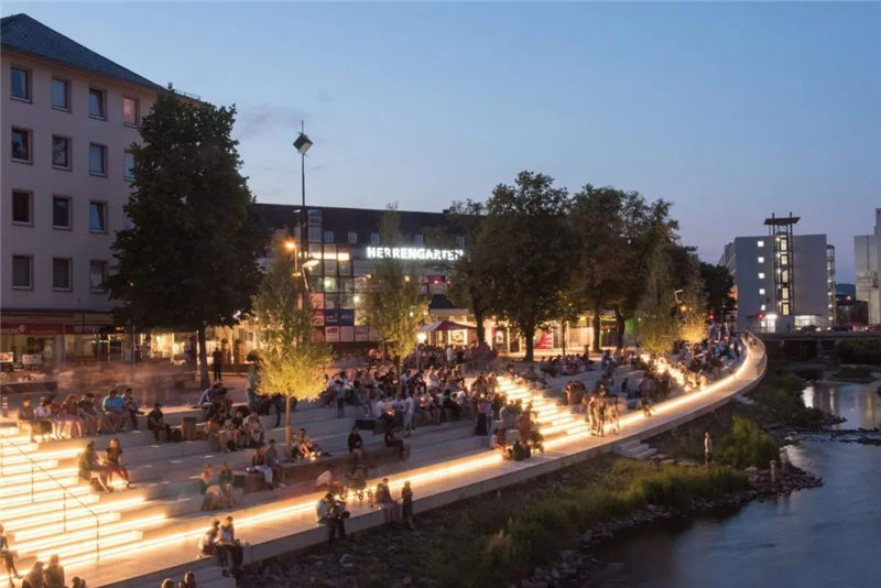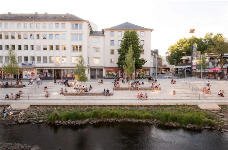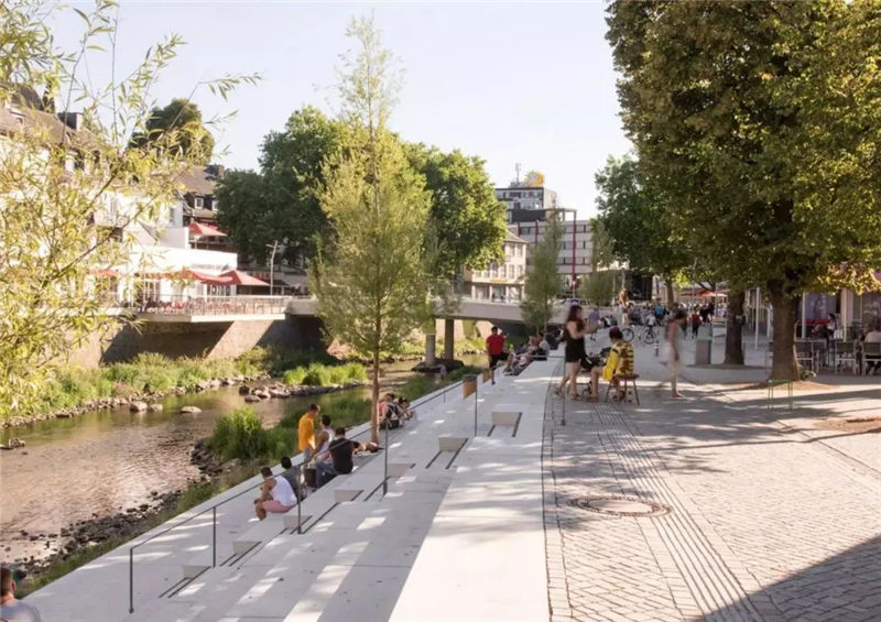 在拆除“ Siegplatte”(位于Sieg河堤防上的停車(chē)場(chǎng))之后,2012年至2016年期間沿著河段的大規(guī)模臺(tái)階建設(shè)使得新的直接通往河段的河流成為可能。錫根市中心。希格(Sieg)自然化,擁有草皮的島嶼和岸堤,可以使水生動(dòng)物和兩棲動(dòng)物通過(guò)生物通道。180米長(zhǎng)的樓梯雕塑在河邊,成為城市與河流互動(dòng)的表演舞臺(tái)。鑒于西格(Sieg)的自然風(fēng)光,西格特雷彭(Siegtreppen)變成了聚會(huì)場(chǎng)所。流域變成了上下城鎮(zhèn)之間的墊腳石。該項(xiàng)目獲得了無(wú)數(shù)獎(jiǎng)項(xiàng),并獲得了2017年德國(guó)景觀(guān)建筑獎(jiǎng)的“綠色基礎(chǔ)設(shè)施作為戰(zhàn)略”類(lèi)別。